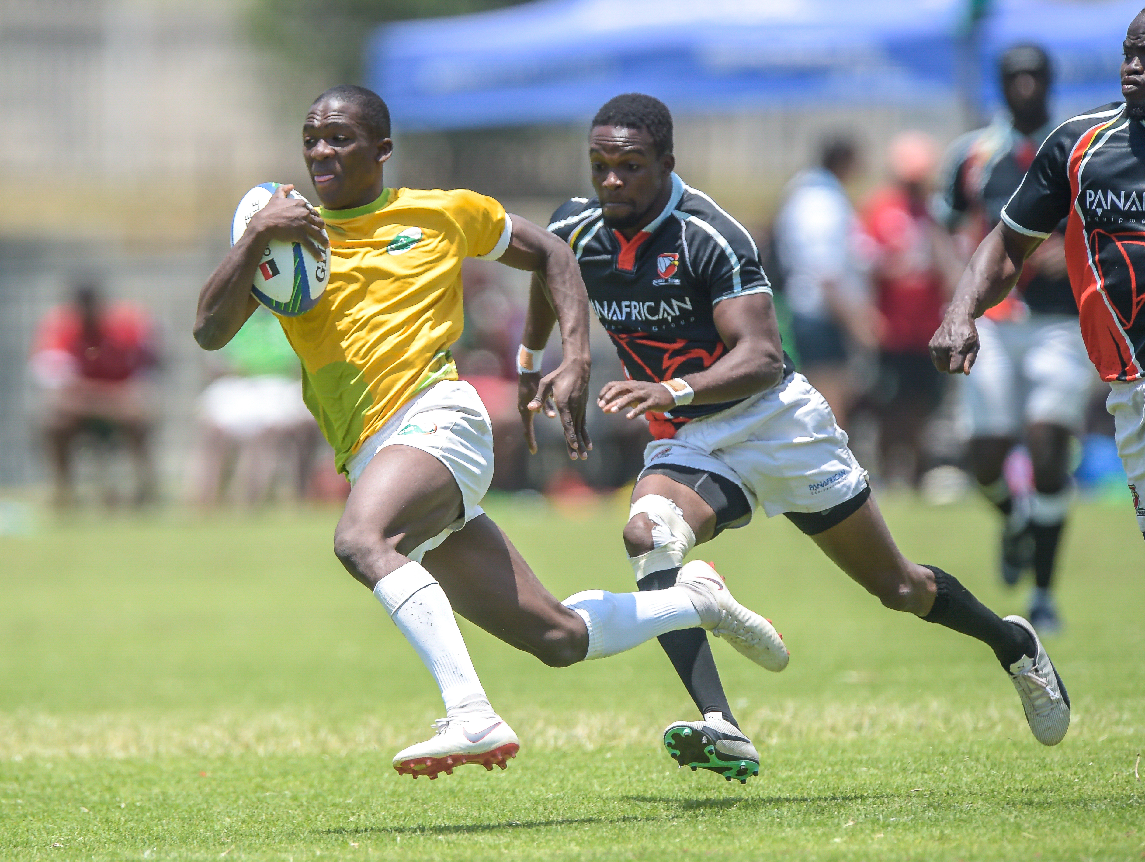Chiemerie Felix of Nigeria and Diaby Ibrahim of Senegal at Rugby Africa Men's Sevens, qualifying to the Summer Olympics Games in Tokyo, Japan in 2020 at the Bosman Stadium, Brakpan, Johannesburg, South Africa on 09 November 2019 (Source: Rugby Africa | 6 years ago) |