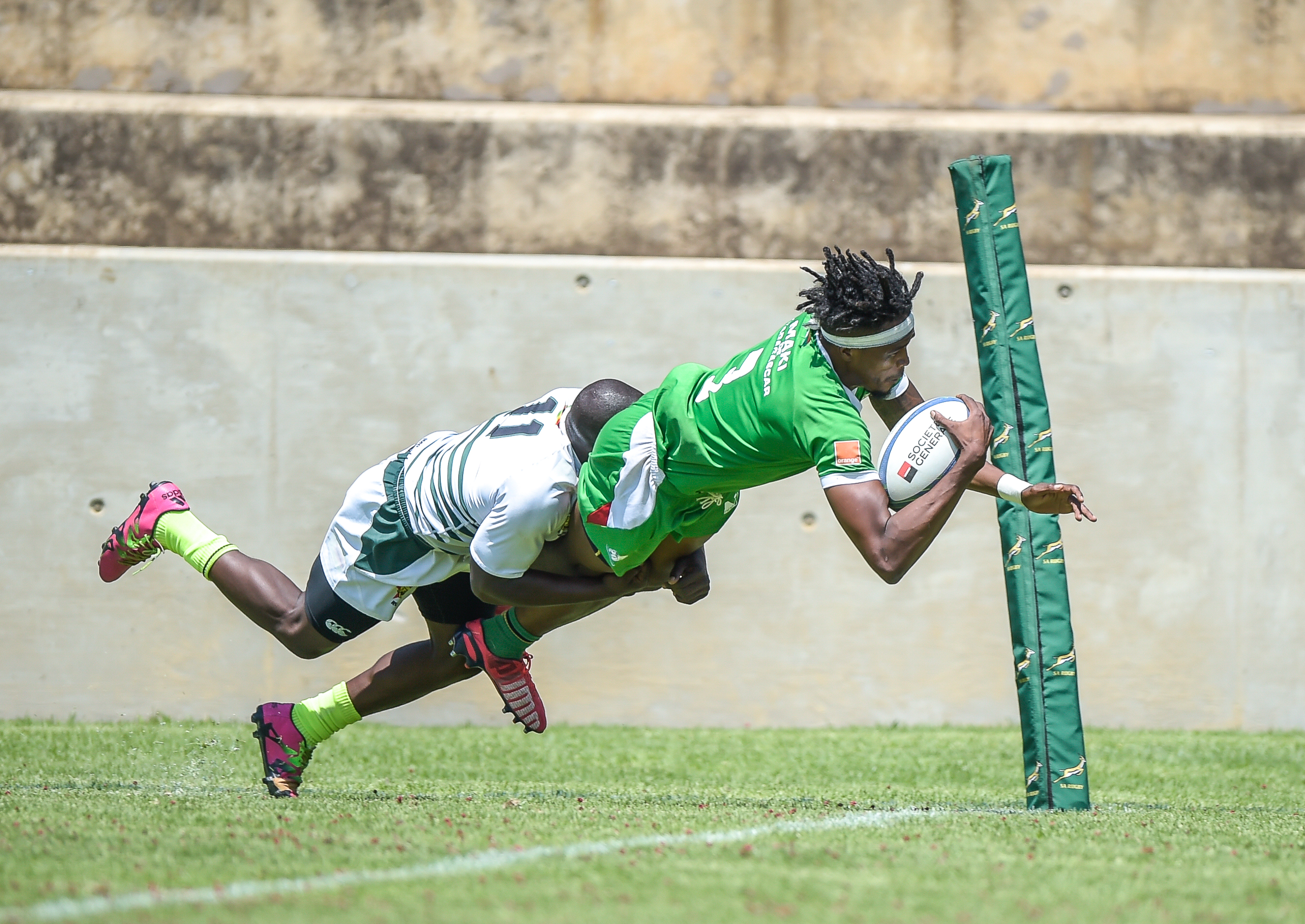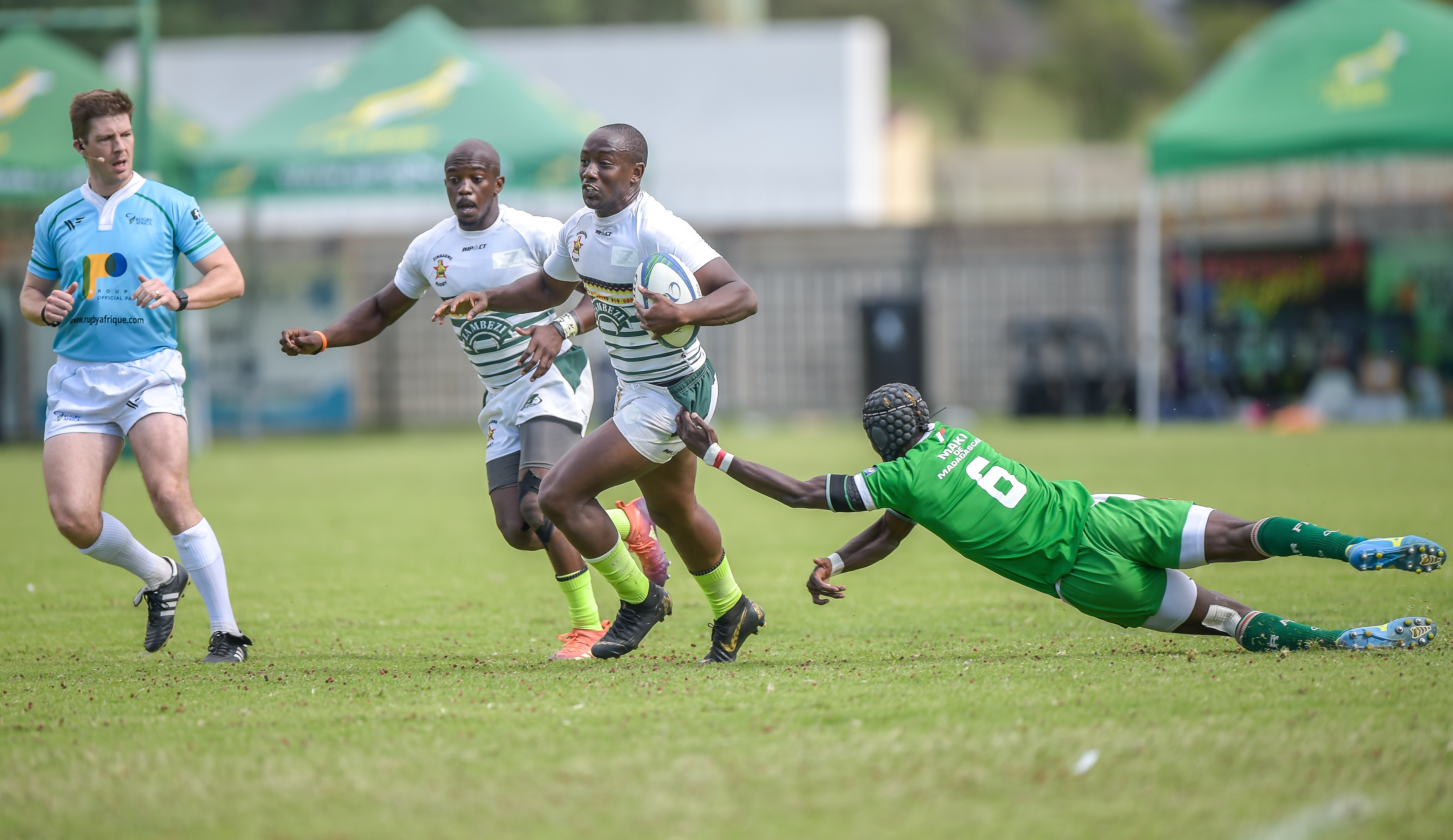 Stephan Hunduza of Zimbabwe and Solomampionona Maminandrasan of Madagascar during Game 23 ZIMBAWE - MADAGASCAR at Rugby Africa Men's Sevens, qualifying to the Summer Olympics Games in Tokyo, Japan in 2020 at the Bosman Stadium, Brakpan, Johannesburg, South Africa on 09 November 2019 (Source: Rugby Africa | 6 years ago) |