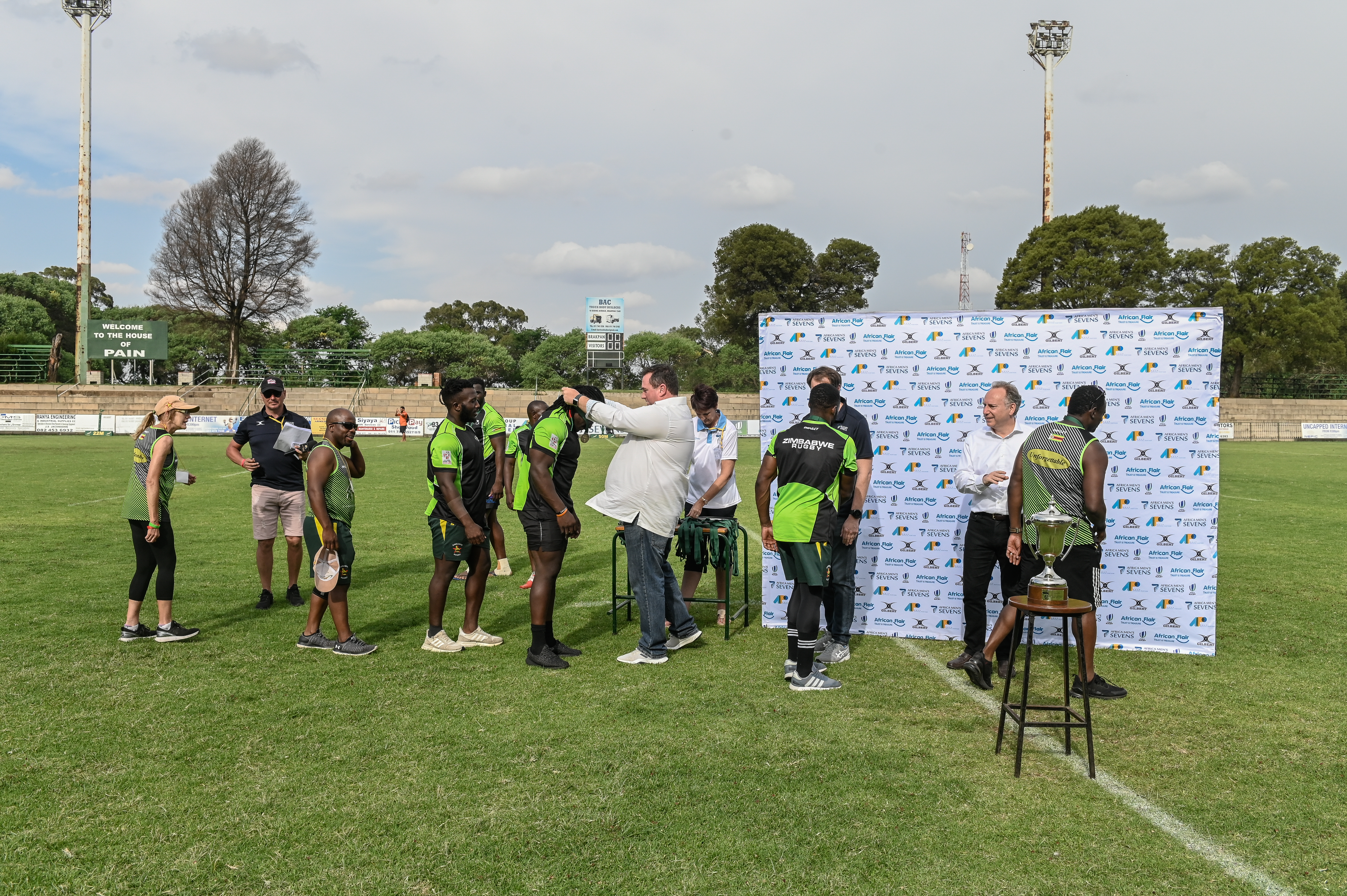 Team Zimbabwe collect their bronze medal after winning the 3-4 play-off match against Madagascar at Rugby Africa Men's Sevens, qualifying to the Summer Olympics Games in Tokyo, Japan in 2020 at the Bosman Stadium, Brakpan, Johannesburg, South Africa on 09 November 2019 (Source: Rugby Africa | 6 years ago) |