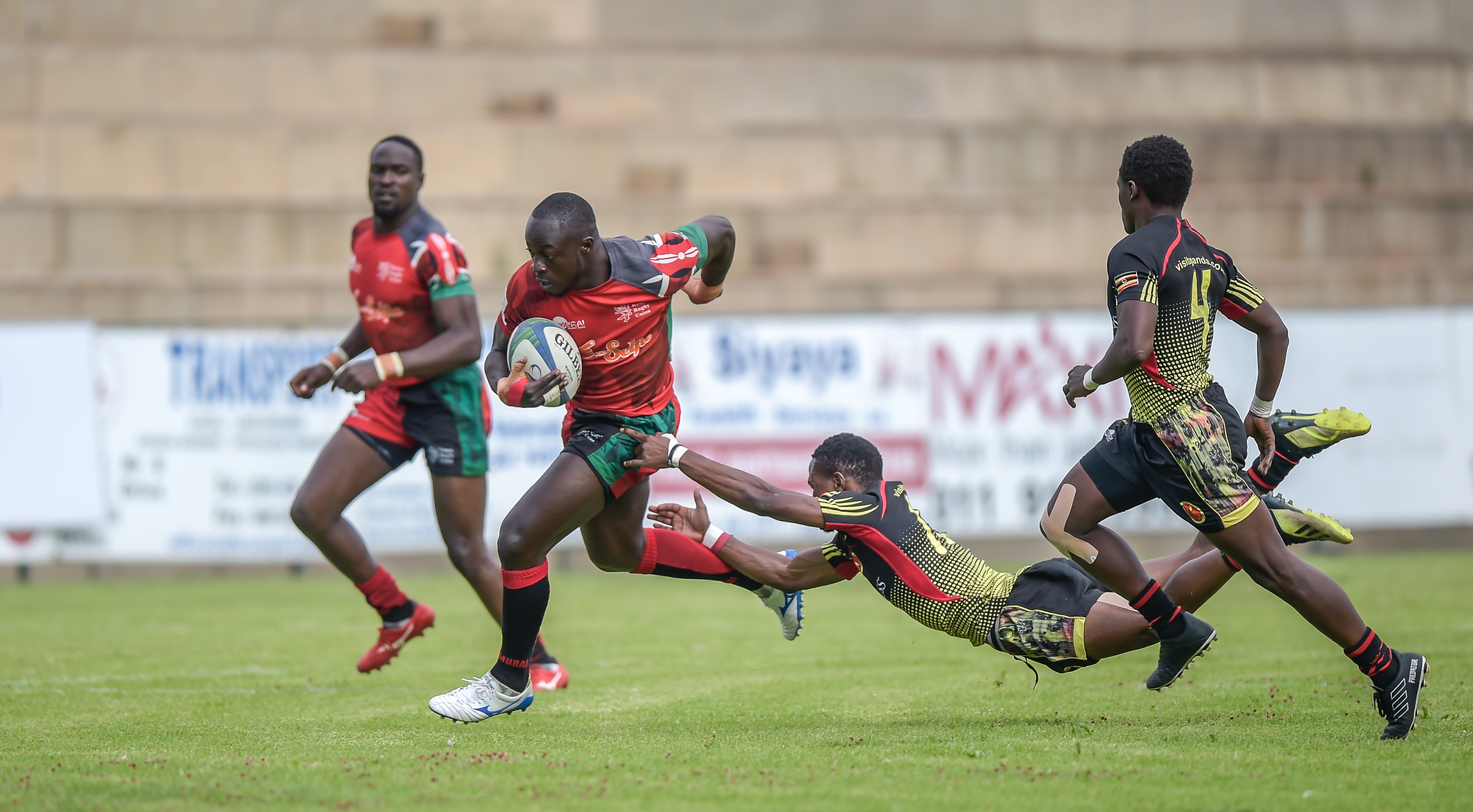 Massangananzia Isaac of Uganda and Johnston Olindi of Kenya during Game 25 KENYA - UGANDA at Rugby Africa Men's Sevens, qualifying to the Summer Olympics Games in Tokyo, Japan in 2020 at the Bosman Stadium, Brakpan, Johannesburg, South Africa on 09 November 2019 (Source: Rugby Africa | 6 years ago) |