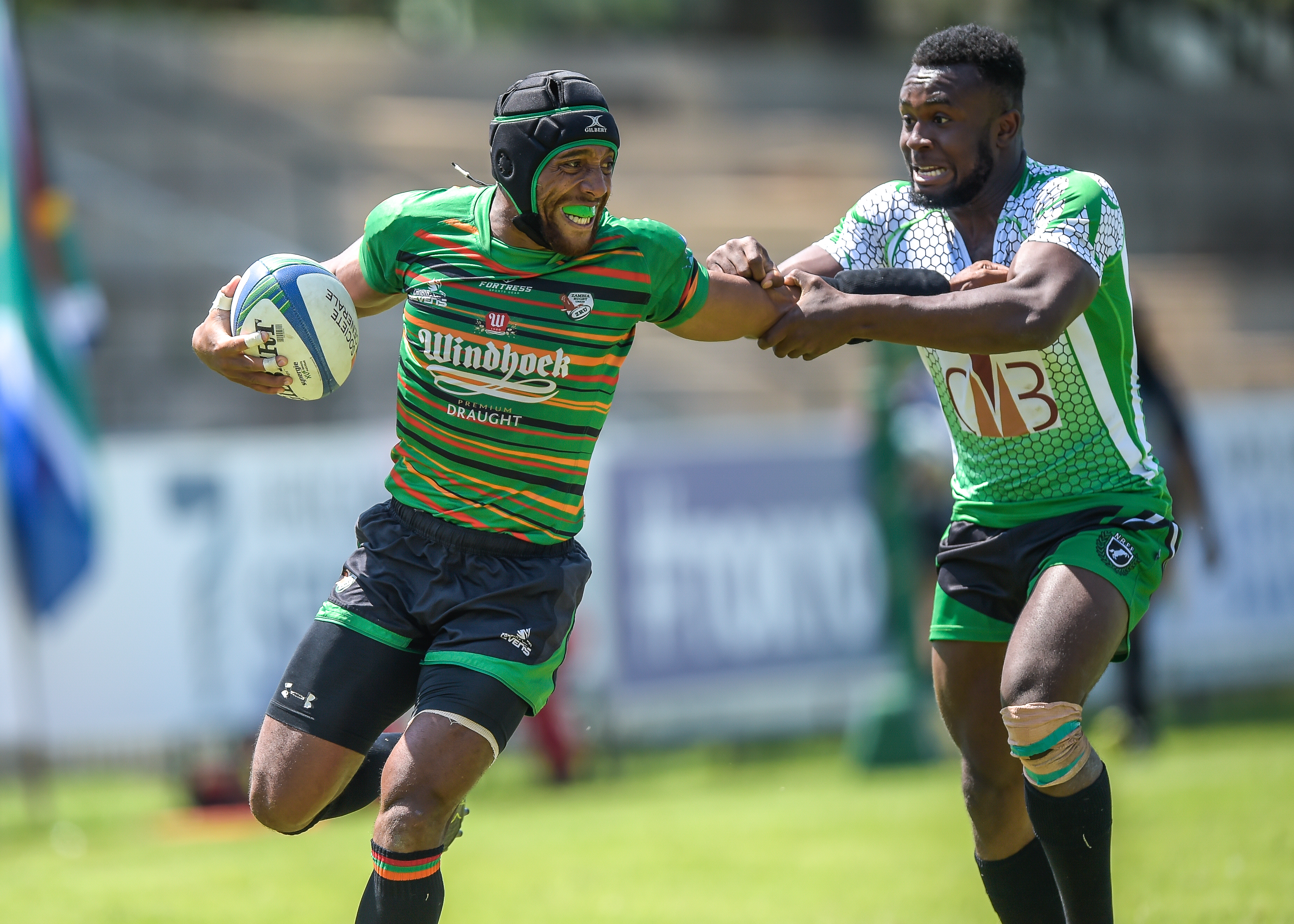 Muharua Katjijeko of Namibia and Sall Mansour of Senegal during Game 24 NAMIBIA - SENEGAL at Rugby Africa Men's Sevens, qualifying to the Summer Olympics Games in Tokyo, Japan in 2020 at the Bosman Stadium, Brakpan , Johannesburg, South Africa on 09 November 2019 (Source: Rugby Africa | 6 years ago) |